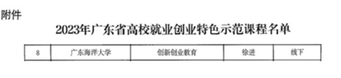 近日,广东省教育厅公布2023年广东省高校就业创业特色示范课程名单的通知,AC米兰徐进老师主持的《创新创业教育》课程获评为广东省高校就业创业特色示范课程。