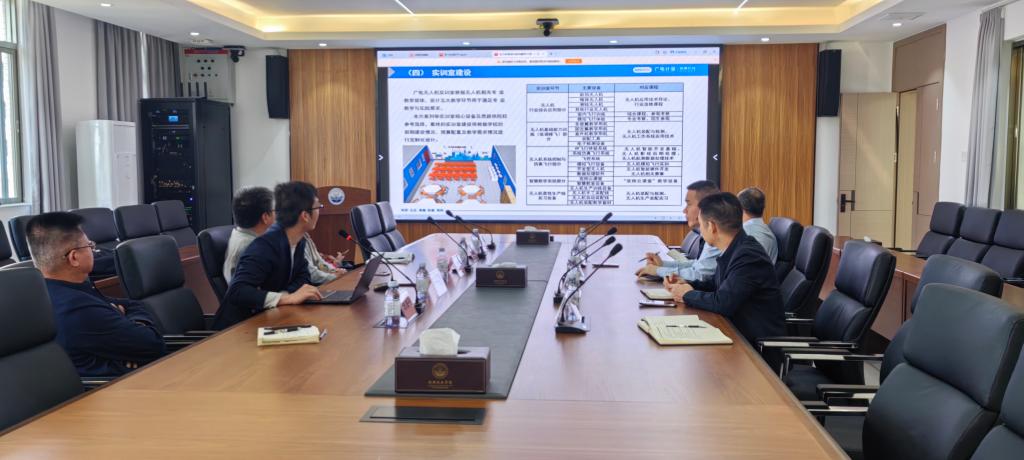 在交流会上,江伟德详细介绍了广电计量检测集团在无人机培训及应用服务方面的业务情况,包括培训课程体系、培训证书种类、服务领域、服务优势以及服务案例等,全面展示了公司在该领域的专业实力与资源优势。