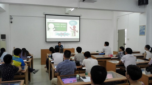 余俊渠主要就开展易班工作的现实意义、学校层面如何建设易班、辅导员如何发挥作用等方面进行了精彩讲座;麦伟强老师主要介绍了易班的内部架构和实际操作,主要是公共平台、公共号、机构群等的功能和具体编辑处理技巧。