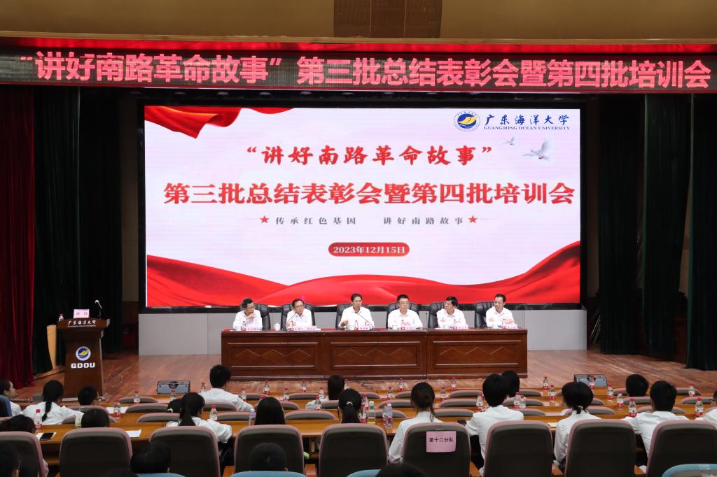 为全面总结第三批“讲好南路革命故事”宣讲团2023年工作开展情况,进一步提升“讲好南路革命故事”宣讲的受众广度、内涵深度、活动精度,12月15日下午,学校第三批“讲好南路革命故事”总结表彰会暨第四批培训会在广学楼多功能厅举行。学校党委副书记林晓敏出席会议并讲话。党委办公室、学生工作部、研究生工作部有关领导,第三批优秀教员、优秀宣讲员,第四批骨干教员、宣讲员共计130多人参加会议。会议由研究生工作部部长、研究生院院长简纪常主持。