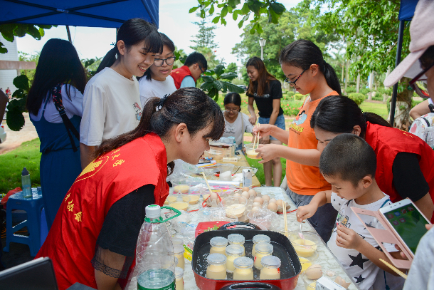 湖光校区兴农路上,集知识性与趣味性,展现海大学院特色、大学生志愿服务、社团风采的文化集市热火开市。食品科技学院以实验形式科普食品知识,电子爱好者展示其设计研发的各种创新科技产品,海大棋社以棋会友,魔术社妙手变出精妙戏法,吉他协会以动听旋律吸引现场观众一同合唱……精彩活动还吸引了留学生们的围观,他们都迫不及待在现场留言板上写下自己的感想或寄语。