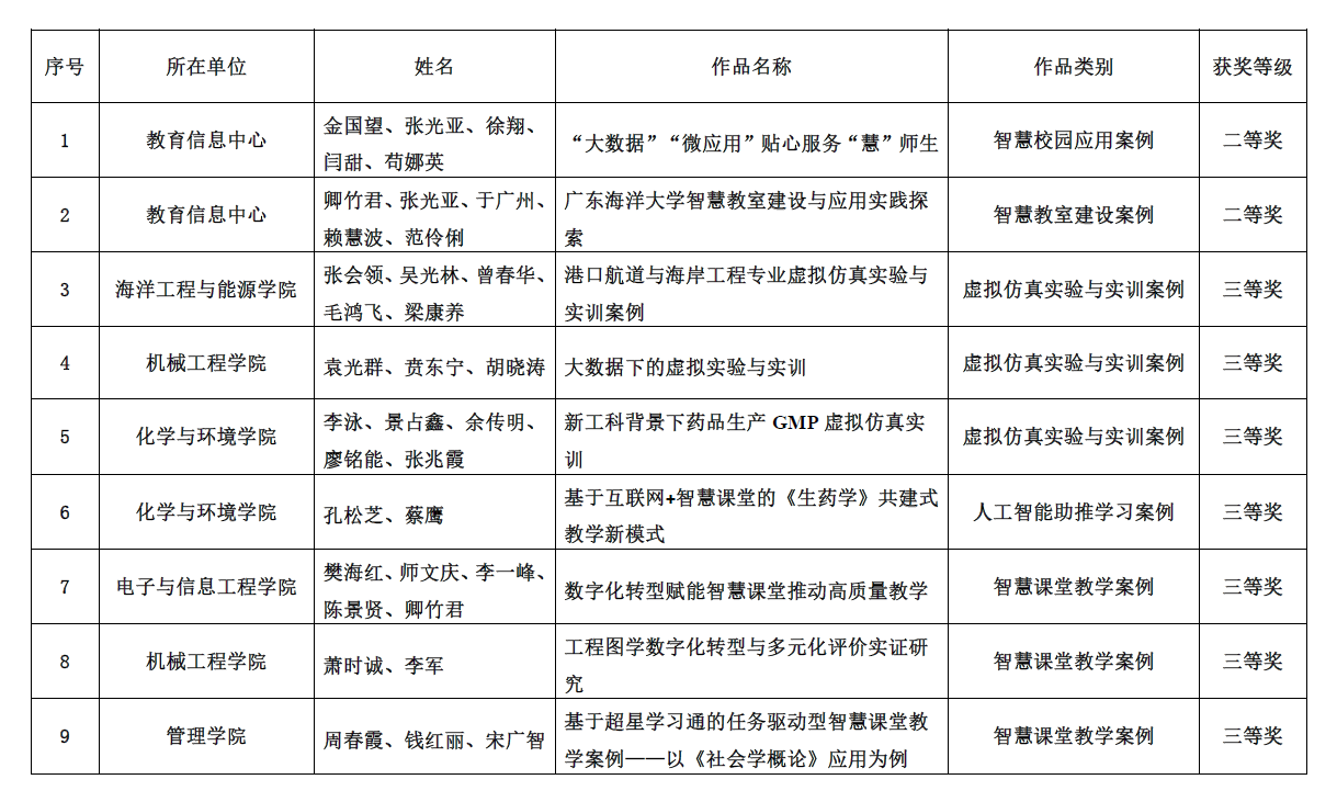 据悉,此次优秀案例的评选,旨在贯彻落实教育部“教育数字化战略行动”,助推广东省高校教育数字化转型。案例坚持正确的政治方向,坚持社会主义核心价值观,选题紧跟教育实践与理论发展的时代主题,反映当前高等教育数字化转型的新举措、新理论、新认识,关注广东省高等教育数字化转型的实践经验与理论提升,具有一定的普遍性。本次面向全省高校共评选出182项优秀案例,其中一等奖37项、二等奖45项、三等奖100项。