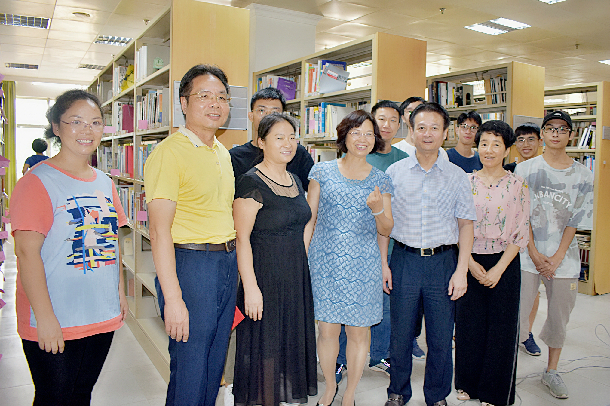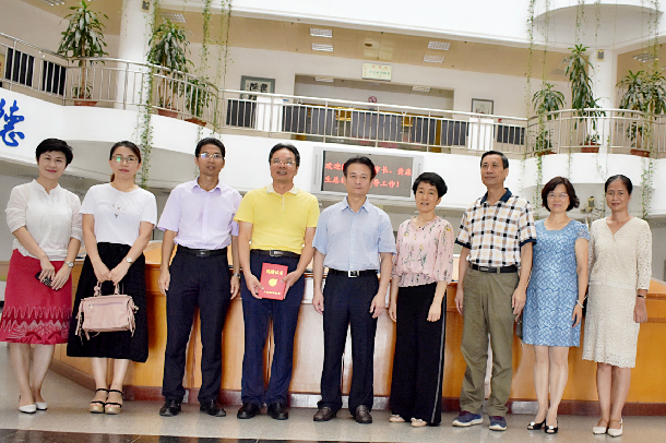 7月14日,湛江市副市长欧先伟、湛江日报社总编辑黄康生一行10人莅临图书馆,看望了假期在馆加班的馆员和勤工助学学生,并向图书馆捐赠图书一批。学校党委常委、党委办校长办主任林晓敏、图书馆馆长樊怡菁、副馆长詹衍玲和陈碧等全程陪同。 当日上午十时许,欧先伟一行来到图书馆202借阅区,看望假期在馆加班的馆员和勤工助学学生,询问书籍管理情况,并与馆员和同学们合影留念。欧先伟一行还参观了熊大仁纪念厅和馆内设施。 与欧先伟同行的湛江日报总编辑黄康生是全国冰心散文奖获得者,本次所赠图书为其个人著作,包括《新闻眼》、《新闻触觉》、《广告创意》、《携春而行》、《向海而蓝》等力作,为图书馆增添了珍贵地方文献馆藏。樊怡菁代表图书馆接受了捐赠。