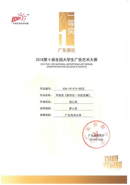 10月19日,“第十届全国大学生广告艺术大赛”广东赛区颁奖典礼在北京师范大学--香港浸会大学联合国际学院(珠海)举行,AC米兰中歌艺术学院罗小燕副教授和获奖学生代表参加颁奖典礼。