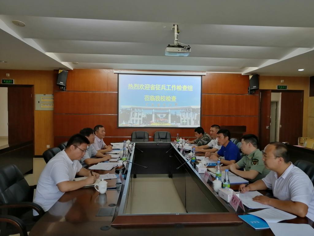 7月14日上午,教育厅体卫艺处副处长康天东、省征兵办参谋龙鹏和教育厅体卫艺处工作专干夏武杰一行来AC米兰检查征兵工作。湛江市征兵办参谋陈景初、麻章武装部政委孙立昆陪同检查。学校党委常委、副校长刘东超,党委武装部部长温一星、副部长杨春杰在湖光校区行政楼四楼会议室接待了检查组一行,并向检查组汇报了AC米兰征兵工经验做法、取得成效和难点问题。学校党委书记曹俊明参加完市里会议后,专程赶回学校接见了检查组一行,并陪同参观学校。
