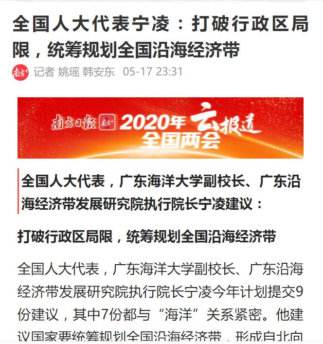 【媒体海大】南方+:全国人大代表宁凌:打破行政区局限,统筹规划全国沿海经济带