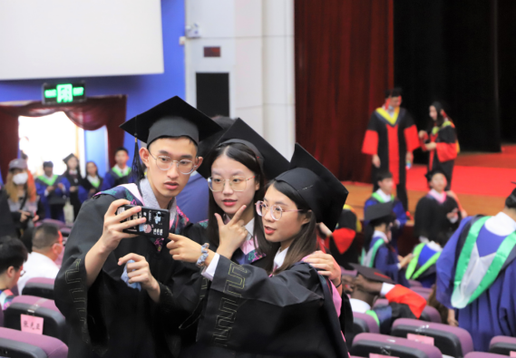 盛夏时节,骊歌唱响,7900余名毕业生奔赴山海,再启新程。6月22日上午,学校以线上线下相结合的方式举行2022届毕业典礼暨学位授予仪式。学校领导曹俊明、刘东超、高秀梅、宁凌、邓逢光、林宇,各学院党委书记及院长、相关职能部门负责人,教师代表、辅导员代表、毕业生代表等在湖光校区实验剧场参加现场典礼。典礼由副校长宁凌主持。