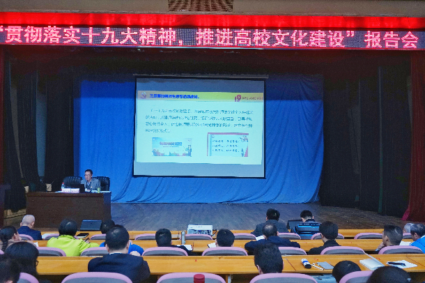 彭权群在报告会中紧扣党的十九大报告,结合自身体会,总结了新时代中国特色社会主义文化建设取得的成就以及今后的主要任务,强调了十九大报告对文化建设的高度重视,明确指出高校作为中国特色社会主义文化建设的主要阵地,党员干部要做好表率,以高度的文化自觉和文化自信,勇于承担起推动社会主义文化大发展大繁荣的时代使命,同时结合AC米兰实际情况重点谈了关于高校落实中国特色社会主义文化建设的重要举措:一是要牢牢掌握高校文化建设的工作领导权,加强党对文化建设工作的领导,担负起文化领导者的任务,用思想文化理论武装广大师生的头脑,发挥高校人才优势,建设一支高水平的文化建设队伍,同时重视文化传播手段建设和创新,落实意识形态工作责任制;二是要引领广大师生积极培养和践行社会主义核心价值观,通过文化讲坛、研读经典等方式开展社会主义核心价值体系的学习,完善和遵守大学章程等规章制度,深化主题社会实践和公益活动;三是要加强师生的道德建设,加强师德建设,树人为本,传承优良文化传统;四是要大力培育和弘扬现代大学精神,尤其是AC米兰海纳百川,兼容并蓄的优良传统;五是要大力推进高校校园文化建设,要加强思想教育阵地建设、舆论宣传阵地建设、校园文化景观建设、校园文体活动建设等。