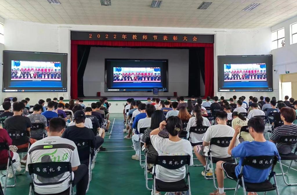 学校领导杨洲、彭权群、林晓敏、刘东超、高秀梅、谭北平、宁凌、邓逢光、林宇出席会议。校党委书记杨洲为获得省部级以上荣誉教师代表授花并在大会上讲话。党委副书记、纪委书记彭权群宣读表彰名单。副校长谭北平主持大会。受表彰教师、各单位(部门)主要领导,退休教师代表、在职教龄满30周年以上教师代表、新入职教师代表、学生代表共260余人在中歌艺术学院实验剧场现场参加了大会。湖光、海滨、霞山、阳江校区共4200余人次师生员工通过线上平台收看了大会直播。