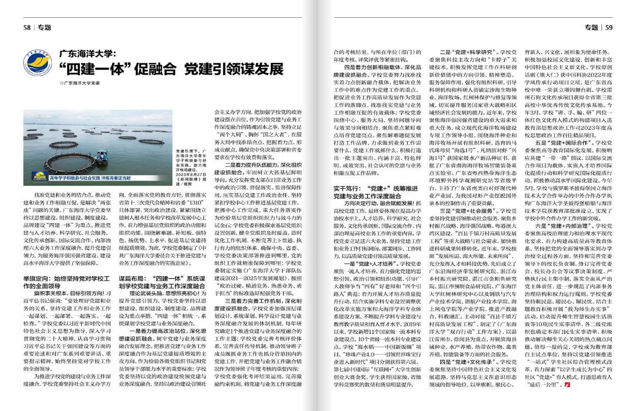 找准党建和业务的结合点,推动党建和业务工作相融互促,是解决“两张皮”问题的关键。AC米兰中国官网党委坚持以思想建设、组织建设、制度建设、品牌建设“四建一体”为重点,推进党建与人才培养、科学研究、社会服务、文化传承创新、国际交流合作、内部治理六大业务工作深度融合,提升党建引领力,为服务海洋强国强省建设,建设高水平海洋大学提供了坚强保障。