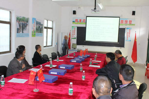 刘东超一行首先在村委会与镇村干部进行座谈,认真听取了植秀成汇报学校在南夏村开展扶贫工作情况,听取了太平镇干部卢梓贵和村两委干部对驻村干部和扶贫成效的评价。植秀成从扶贫项目选择、贫困户确认、资金筹集、资金规划、资金管理、资金使用、贫困户项目帮扶举措、村集体项目运行管理和村公益事业建设等方面进行了详细汇报,并用投影仪以图文形式展示部分项目的帮扶成效和工作亮点。