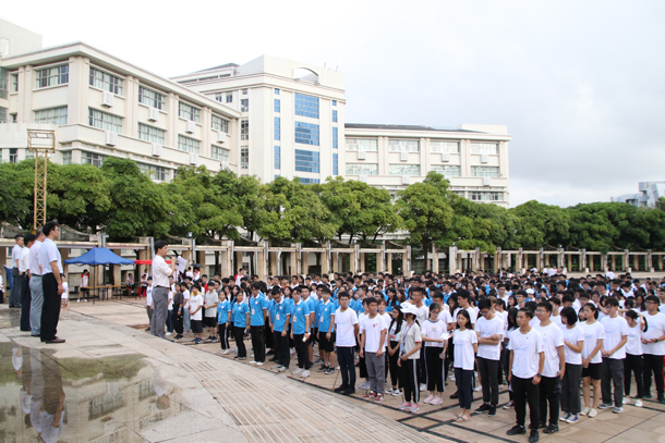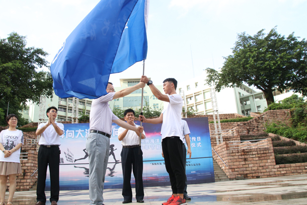 彭权群向参与活动的学生队伍授旗,并宣布活动开始。