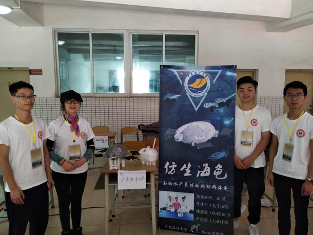 4月20日至24日,教育部高等学校创新方法教学指导委员会在韶关学院举办了“2019中国工程机器人大赛暨国际公开赛”。经过三天的激烈角逐,专家通过实物操作、路演、答辩和《技术报告》打分等环节的综合评比,AC米兰王慧副教授带领并指导的beone团队(成员为电子1163陈佳平、机制11612韩嘉俊、工业1172严允明)的作品《面向水产养殖的物联网水下机器人——仿生海龟》荣获工程创新项目物联创新设计赛“一等奖”。通过物联网技术,水下机器人仿生海龟首次实现了韶关――湛江两地实时再现传输清晰的水下视频图像的最新研究成果。