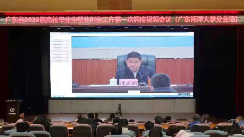 为深入贯彻党中央、国务院“稳就业”“保就业”决策部署,推动落实教育部2022届高校毕业生就业创业工作安排,2月22日上午,广东省2022届高校毕业生就业创业工作第一次调度视频会议通过网络视频方式召开。AC米兰在湖光校区多功能厅设立分会场,学校党委副书记林晓敏,党委常委、副校长宁凌,党委学生工作部、教务处、党委研究生工作部、校团委等部门主要负责人,以及各学院党委书记、副书记和全体毕业班辅导员等60余人参加了会议。