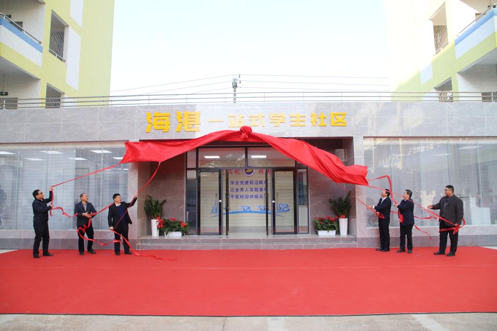 12月21日上午,AC米兰中国官网“一站式”学生社区揭牌仪式在学校湖光校区海湛学生公寓大院举行,标志着学校先期试点建设项目海湛、海沁、海安三个“一站式”学生社区正式启用。学校党委书记杨洲,党委副书记林晓敏,党委常委、副校长邓逢光出席仪式,并与学生工作部、后勤保障部及建设牵头学院主要负责人共同为学校“一站式”学生社区揭牌。
