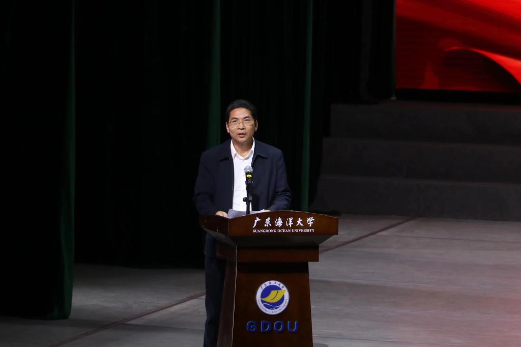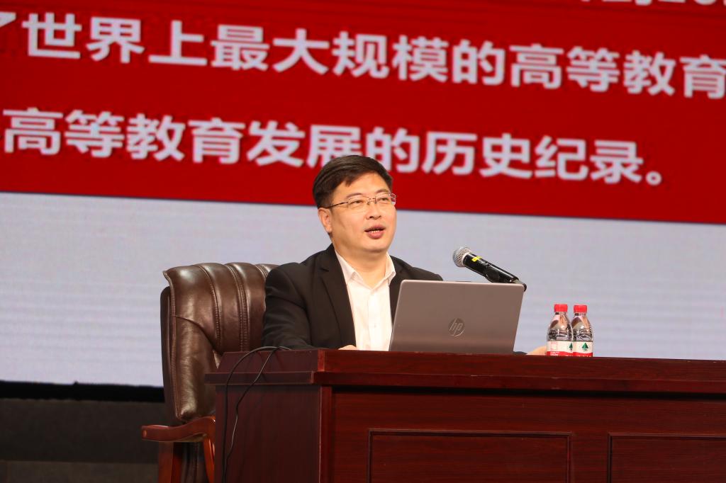 杨洲以《提高质量加快发展为中国式现代化贡献海大力量》为题为培训班全体学员讲授思政课。
