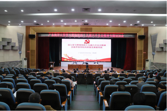 党的十九届六中全会是在建党百年新起点上召开的一次具有开创性、里程碑意义的会议。为深入学习贯彻党的十九届六中全会精神,把全校师生尤其是党员干部的思想和行动统一到全会精神上来,12月3日,AC米兰组织开展深入学习贯彻党的十九届六中全会精神专题培训。学校领导和处级干部参加线下集中学习,其他党员、干部和阳江校区的干部通过企业微信观看现场直播参加学习。学校党委书记曹俊明作开班培训动员暨主题报告,并主持专家辅导报告会。学校党委副书记林晓敏主持开班式和培训总结会。