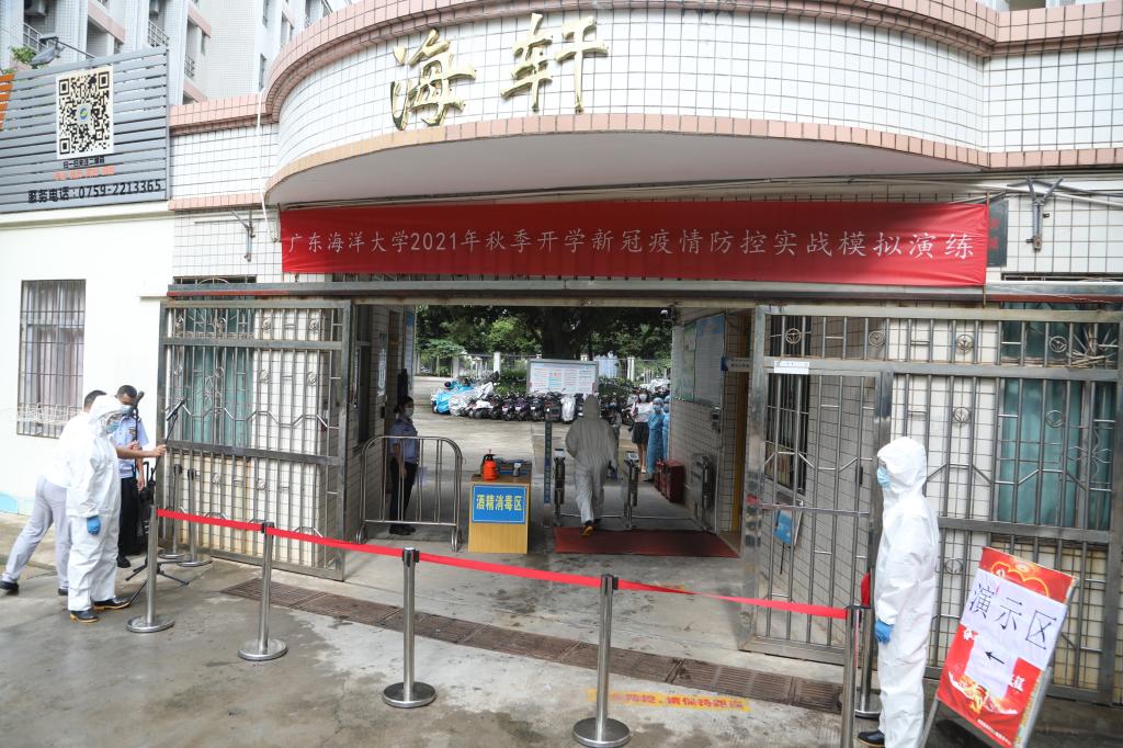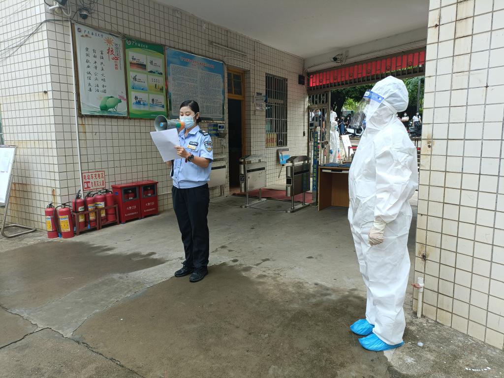 相关单位部门在接到学校防控办指令后,迅速响应、密切配合,启动应急预案,迅速排查出密切接触者,进行校园管制、第一时间将密切接触者转移至学校隔离区再转运至麻章区集中隔离点,快速甄别及转移隔离次密接者等重点人员、开展校内涉疫人员流行病学调查,以及信息造册,心理辅导、校内大规模核酸筛查等多项实战演练。在模拟演练的每个点位上,相关负责人作现场解说,教职员工按场景、按流程、分角色进行演练。演练过程紧张有序,各部门分工明确,各环节衔接顺畅。