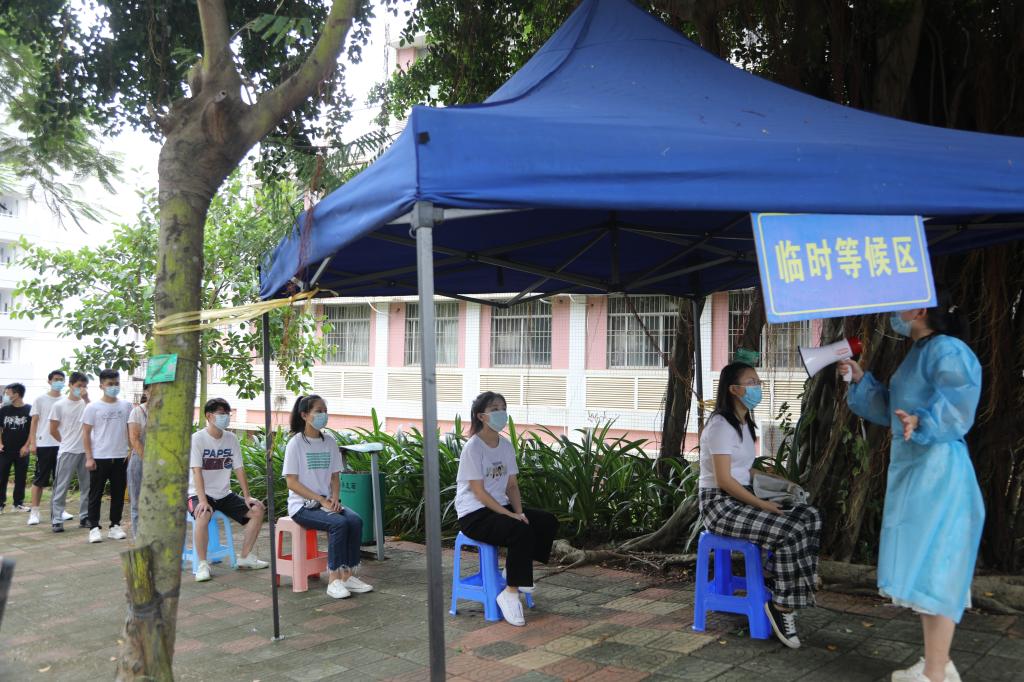 此次演练采用实战模式,分别在湖光校区海轩宿舍大院、校门诊部、南门等重点场所设置演练点,模拟背景为:AC米兰1名学生张某确认为密切接触者后,学校迅速启动应急预案情景。