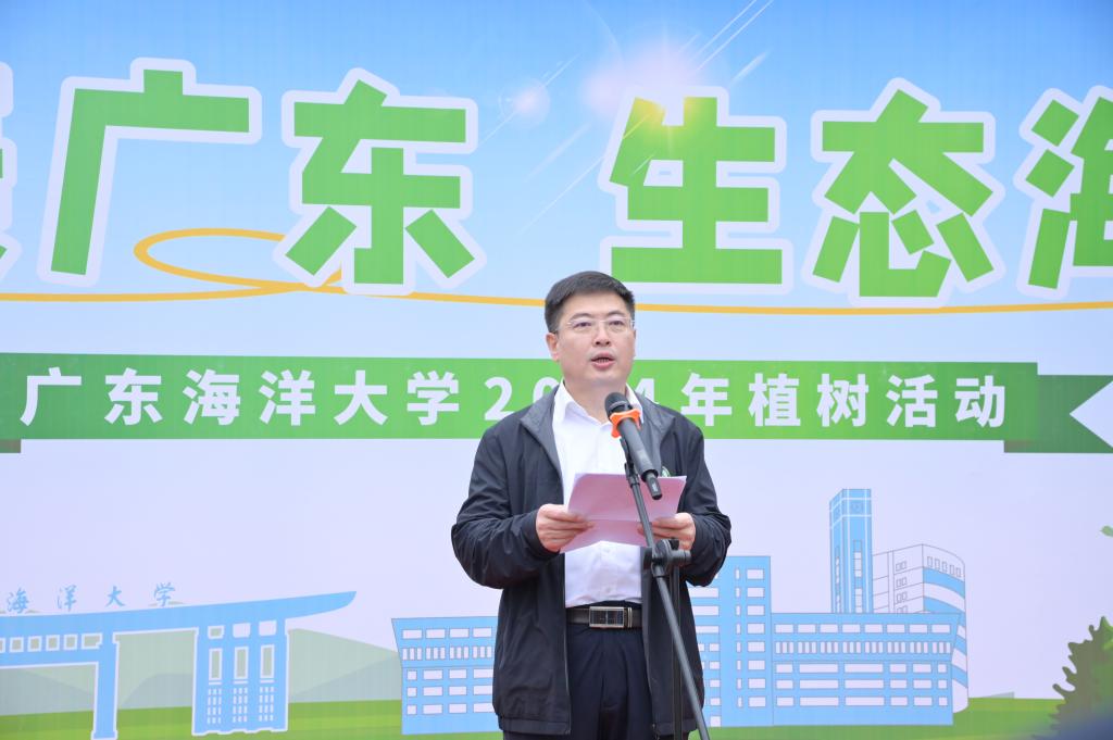 活动开幕式上,杨洲对参加本次活动的校友和来宾们表示热烈的欢迎以及衷心的感谢。他指出,本次植树活动既是全面践行习近平生态文明思想,贯彻落实省委“1310”具体部署绿美广东生态建设和省教育厅关于义务植树活动工作安排的具体实践,也是关乎学校高质量长远发展和民生福祉的重要工程,要深刻认识绿美海大的生态价值、育人价值、惠民价值,力争打造“学在林中、路在绿中、房在园中、人在景中”的绿美海大校园环境。