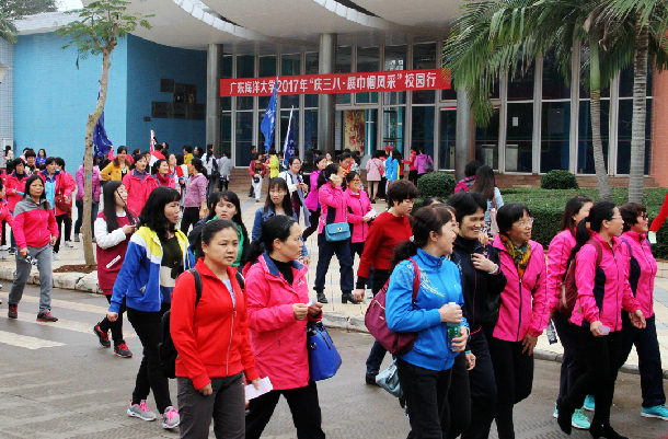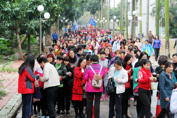 为庆祝国际三八妇女节, 3月8日下午,学校教育工会组织了2017“庆三八·展巾帼风采”校园行活动。全校无授课任务的女教职工共800余人参加了此次活动。