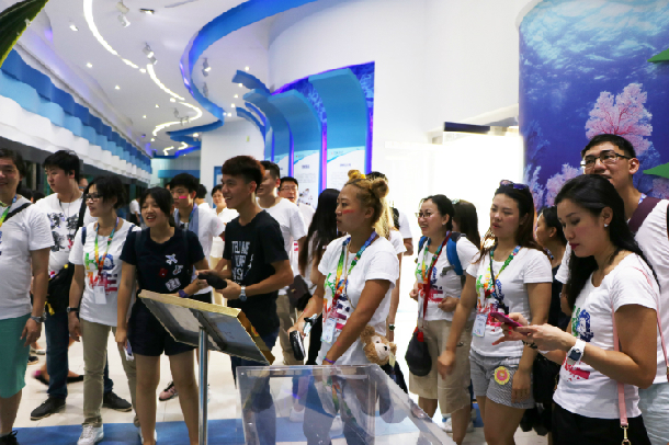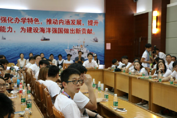 交流团一行参观了校园环境景观、水生生物博物馆、海洋遥感实验室,了解了学校的建设发展情况,感受了海洋世界的博大精深,为“高大上”的卫星遥感技术纷纷点赞。参观完后,一行人在博物馆学术报告厅举行了座谈会,校团委、校学生会、社团联合会的学生干部为来宾介绍了丰富多彩的校园文化活动,并现场举办了海洋趣味知识竞答活动。