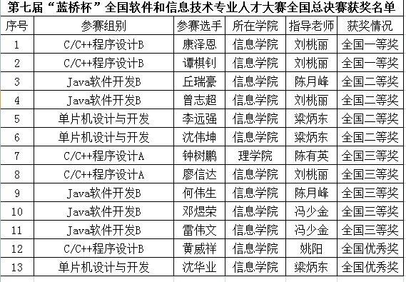 5月28、29日,第七届蓝桥杯全国软件和信息技术专业人才大赛全国总决赛在北京大学举办。全国800多所高校约4000多名通过各省省赛选拔出的精英选手参加了本次总决赛。AC米兰信息学院姚阳老师带领AC米兰由省赛晋级全国总决赛的13位参赛选手赴北京参加了总决赛。AC米兰学子在比赛中不畏强手,发挥出色并取得优异成绩。在参加的C/C++程序设计本科A组、B组,JAVA软件开发本科B组总决赛中,康泽恩、谭棋钊勇夺全国一等奖,李远强等4位同学获得全国二等奖。钟树鹏等5位同学荣获全国三等奖,黄威祥等2位同学获得优秀奖。