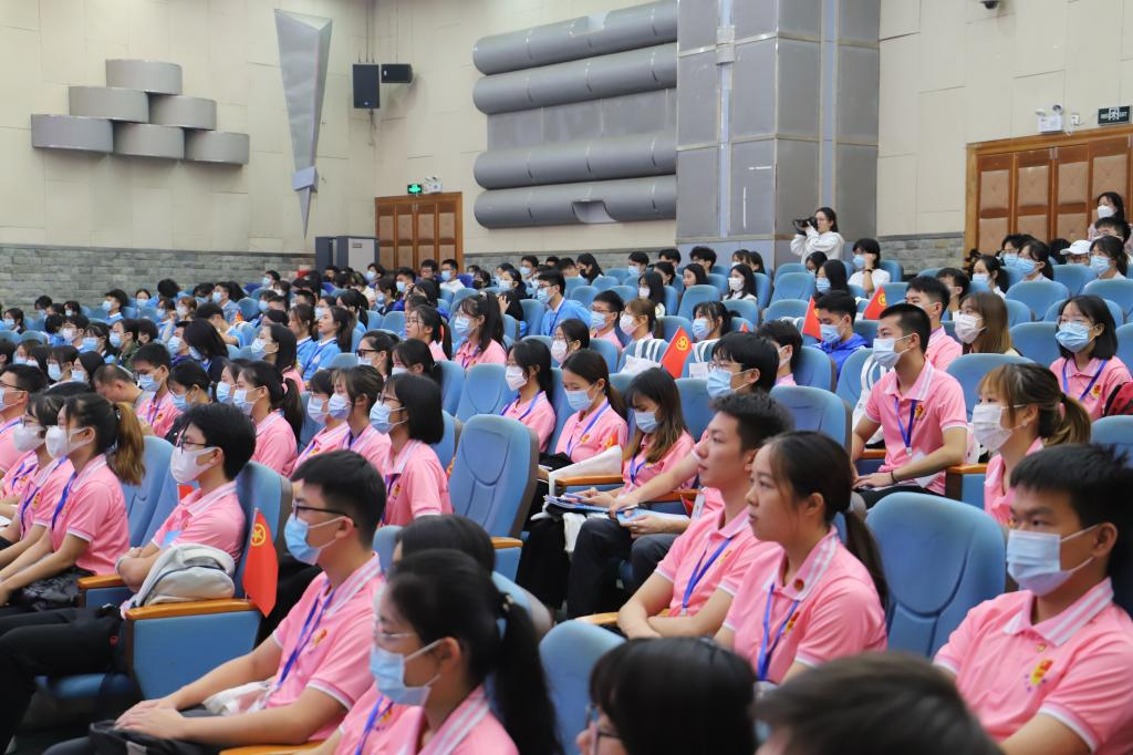 全体学员进行了宣誓,校主持队发表了《拥抱海大 向梦出发》的青年献词。“请党放心,强国有我”的铮铮誓言,在会场内回响。