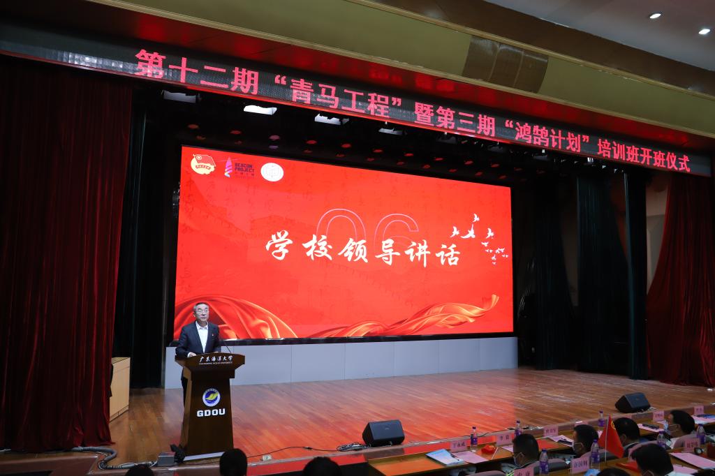 开班仪式在庄严的国歌声中拉开帷幕。在观看上一期青马工程和鸿鹄计划培训成果视频后,林宇宣读了第十一期青马班和第二期鸿鹄班的优秀集体和个人名单。曹俊明、林宇分别为获奖学生代表颁奖。曹俊明为第十二期青马工程和第三期鸿鹄计划培训班授旗。