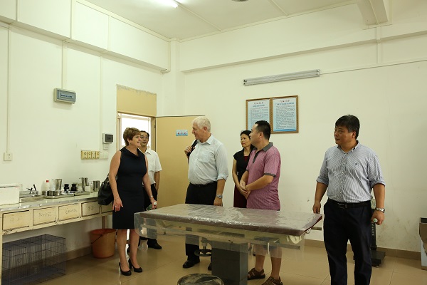 下午,罗宾-麦奎因副校长一行在副校长高秀梅的陪同下,先后参观了广东省水产动物病原生物学及流行病学重点实验室、南海渔业资源保护与开发实验室、鱼类摄食生态实验室、海洋化学实验室、海洋生态实验室、海洋调查实验室、农学院动物医学实习基地、水生博物馆,并分别与有关专业负责人及学科教授见面交流。