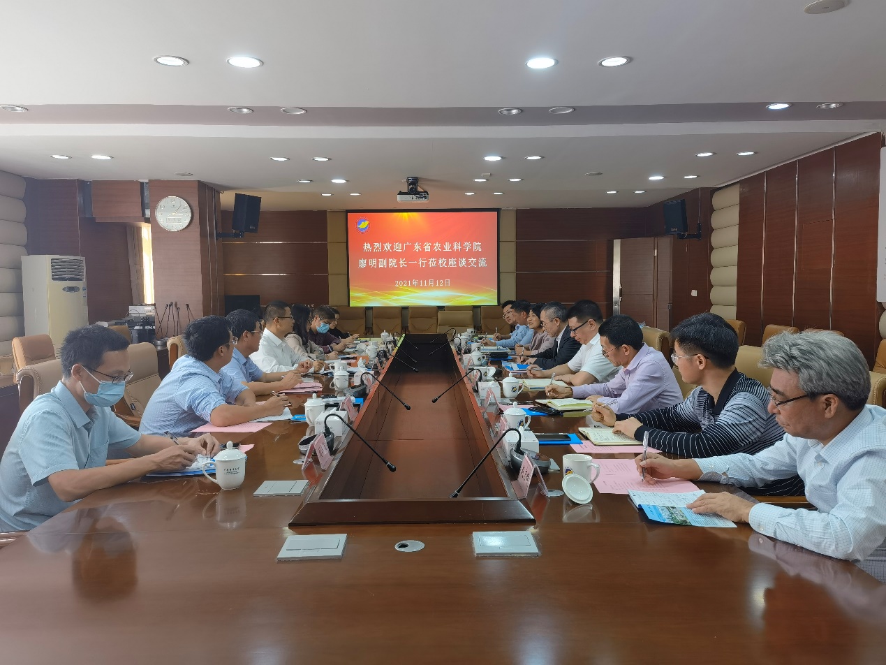 广东省农业科学院农业资源与环境研究所所长顾文杰、动物卫生研究所副所长王刚及动物科学研究所水产研究室主任黄文、AC米兰水产学院院长李广丽、研究生院副院长叶国栋、科技处副处长伍彬、滨海农业学院副院长马驿、畜牧学学科带头人赵志辉等就各自的研究方向及合作需求进行交流互动。