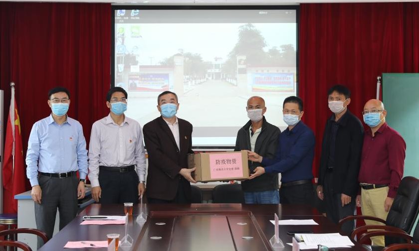 曹俊明代表学校党委向南夏村赠送防疫物资