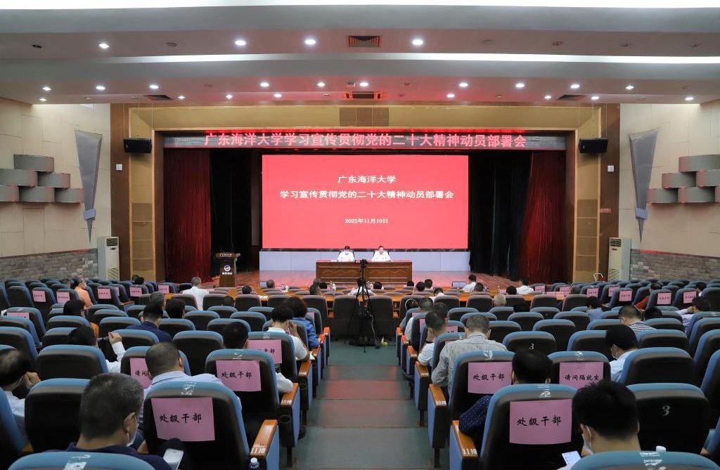 杨洲强调,深入学习宣传贯彻党的二十大精神是当前和今后一个时期全校的首要政治任务。要充分认识学习宣传贯彻党的二十大精神的重大意义,切实把思想和行动统一到党中央决策部署上来,把智慧和力量凝聚到实现党的二十大确定的目标任务上来,担负起为党育人、为国育才的光荣使命,扎实做好学校改革发展稳定各项工作,加快国内一流国际知名的高水平海洋大学建设步伐,为加快推进教育现代化、建设教育强国、办好人民满意的教育,为发展海洋经济、保护海洋生态环境、加快建设海洋强国,不断强化教育对全面建设社会主义现代化国家的基础性、战略性支撑作出海大贡献。