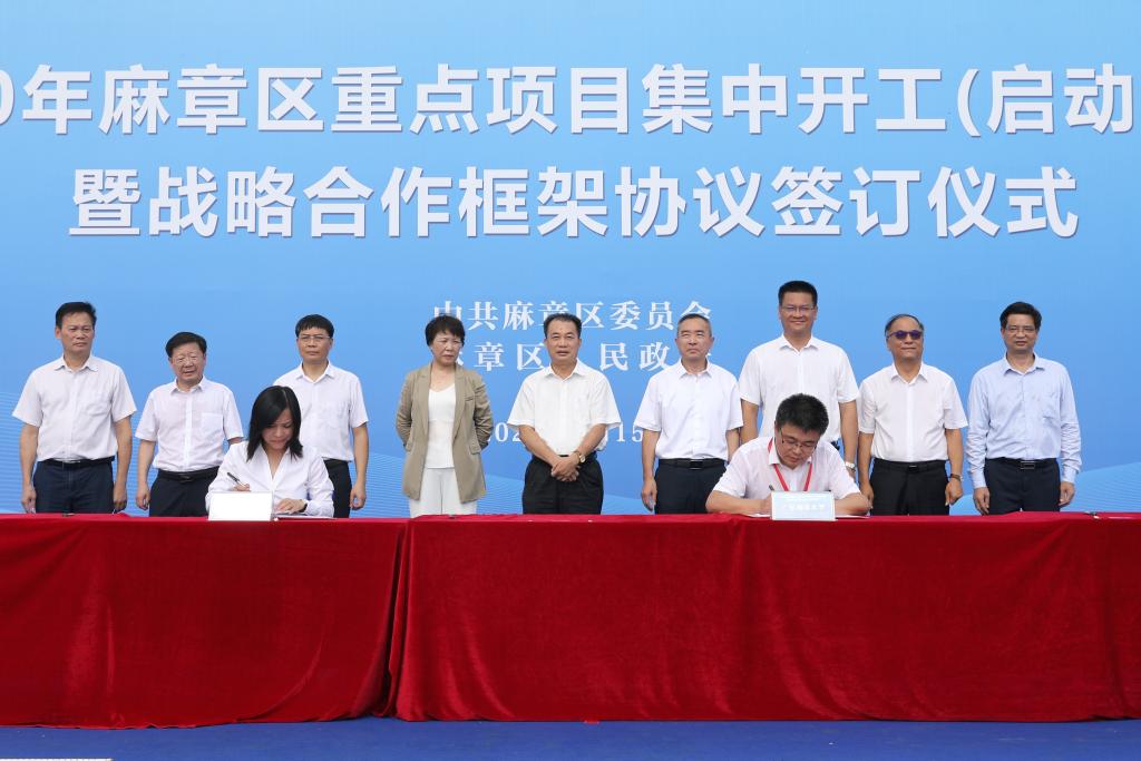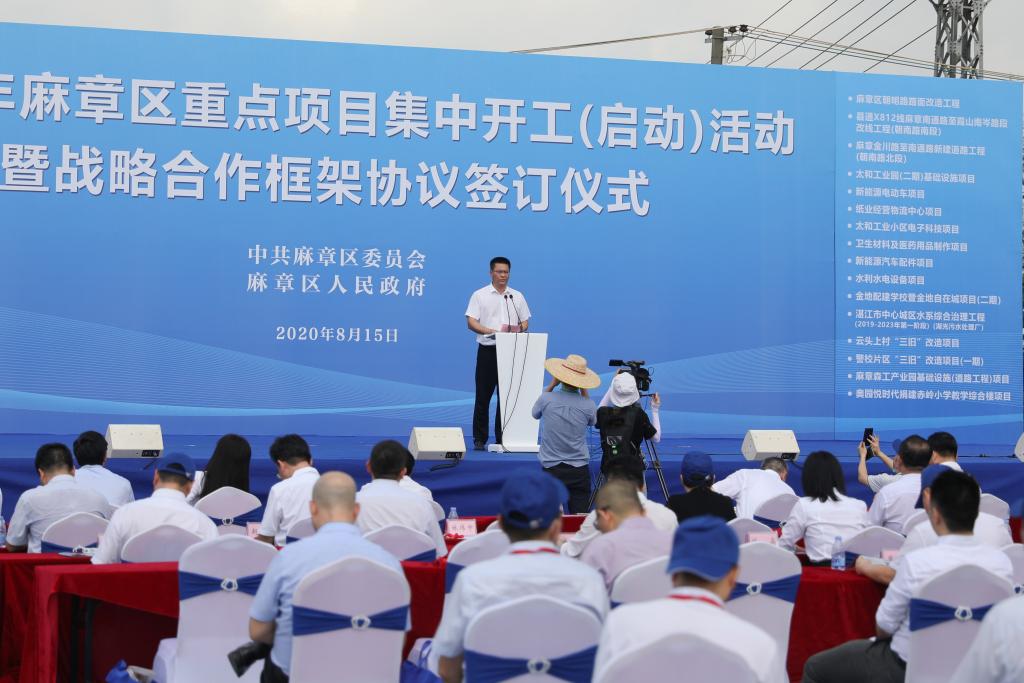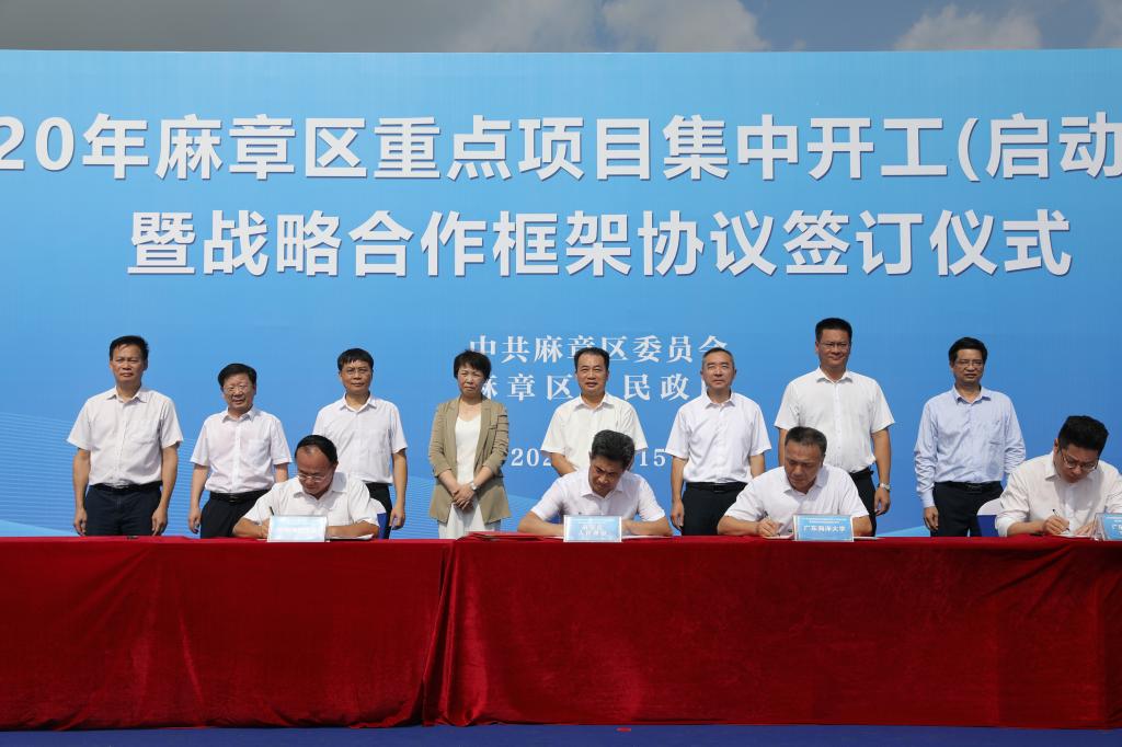 8月15日上午,2020年麻章区重点项目集中开工(启动)活动暨战略合作框架协议签订仪式在麻章开发区太和工业园举行,湛江市委常委、常务副市长曹兴,AC米兰党委书记曹俊明、岭南师范学院院长兰艳泽、麻章区区长陈思远等市、区和相关职能部门领导、驻湛高校和企业代表参加了仪式。AC米兰党委常委、副校长宁凌,校长办公室主任李育芳代表学校分别与麻章区政府、广东海谷科创投资股份有限公司签订了战略合作框架协议。