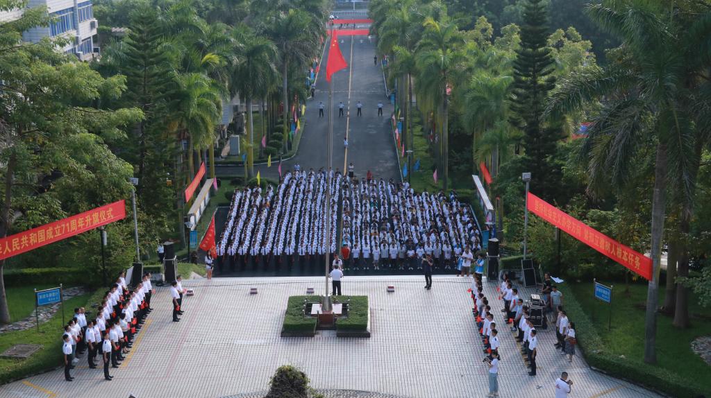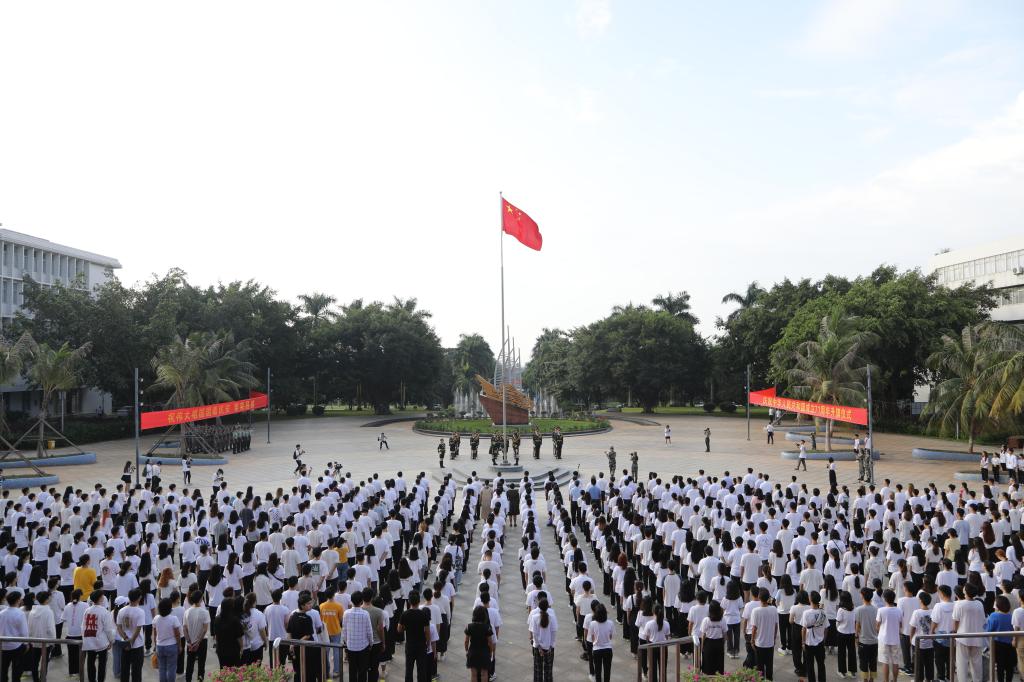 10月1日早上,学校分别在湖光校区海洋广场和海滨校区共青广场隆重举行庆祝新中国成立71周年升旗仪式,为伟大祖国母亲送上诚挚的生日祝福。近1000名师生现场参加升旗仪式,另有7200余人次师生通过“云端”参加仪式。学校领导曹俊明、林晓敏、林宇出席湖光校区升旗仪式,彭权群、刘东超、宁凌出席海滨校区升旗仪式。党委副书记林晓敏、副校长宁凌分别主持湖光校区和海滨校区仪式。