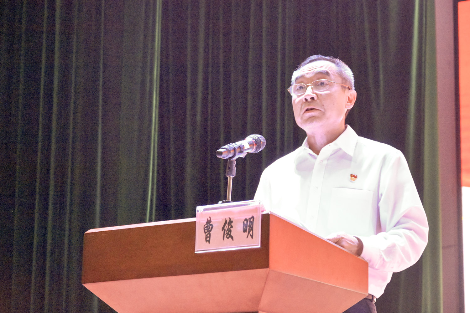 曹俊明发表了讲话,对学校十年来青马工程和首届鸿鹄计划学生干部培训班的成果给予了肯定,对开展好青马工程和学生干部培训提出了三点希望和要求:一是加强政治理论学习,坚定理想信念。在各类活动中高举旗帜、亮明身份、做好表率,发挥青马学员和学生干部的示范引领作用,带动同学们创先争优。二是爱党爱国爱校,让青春在奋斗中出彩。在报效祖国、服务人民、奉献社会的过程中实现自身的成长发展,在奋斗中让青春飞扬、绽放出更加绚丽的光彩。三是努力锤炼本领,担当时代赋予的神圣重任。要把学习作为一种责任、一种精神追求、一种生活方式,让增长本领成为青春搏击的能量,在学校里努力学习掌握科学知识,锤炼过硬本领,使自己的思维视野、思想观念、认识水平跟上时代发展。最后,曹俊明号召同学们唱响“同人民一起开拓、同祖国一起奋进”的时代最强音,闻鸡起舞、日夜兼程,努力学习,开拓创新,在建设国内一流国际知名高水平海洋大学、实现中华民族伟大复兴中国梦的征程中放飞青春梦想、创造新的辉煌!