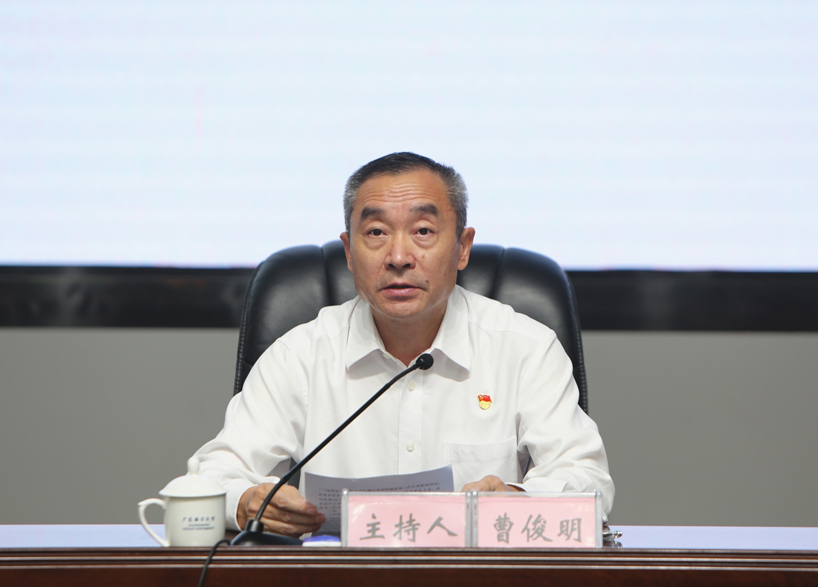 10月10日上午,学校在湖光校区教学主楼多功能厅举行省委宣讲团《习近平谈治国理政》第三卷宣讲报告会暨党委理论学习中心组学习(扩大)会,党委书记曹俊明主持报告会,广东省社会科学院党组成员、副院长赵细康二级研究员作专题报告。学校领导、党委理论学习中心组全体成员,学校副处级(含相当)及以上干部、党委理论宣讲团成员及党群部门正科级干部等共160余人现场参加报告会,另有900余名师生通过企业微信直播参会。