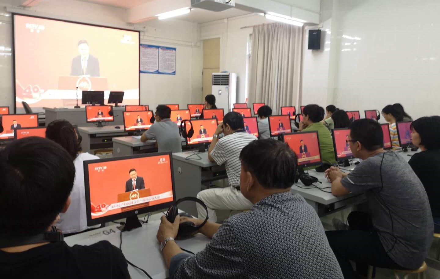 10月14日上午,深圳经济特区建立40周年庆祝大会在广东省深圳市隆重举行。中共中央总书记、国家主席、中央军委主席习近平出席大会并发表重要讲话。学校领导、各二级党组织、各单位部门党员干部和师生通过各种途径收看了大会直播,认真学习习近平总书记在庆祝大会上的重要讲话精神。