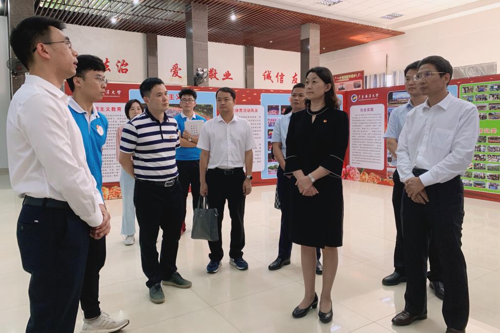 10月21日下午,共青团中央组织部副部长、一级巡视员王婷一行莅临AC米兰调研“青马工程”工作,共青团广东省委组织部部长王浩、共青团湛江市委书记黄哲辉、学校党委副书记林晓敏、校团委书记郑一鸣等陪同调研。