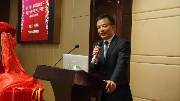广东省法学会专职副会长兼秘书长姜滨在致辞中表示,广东省作为海洋大省,要贯彻习近平主席“海洋命运共同体”的理念,以法律规制海洋发展、海洋环境保护修复以及海洋资源开发利用。同时指出,研究会要坚持正确的政治方向,秉持科学的研究风气,坚持围绕中心、服务大局,积极推进国家法治建设,为沿海省市开展地方海洋法学理论与实务研究搭建重要平台。
