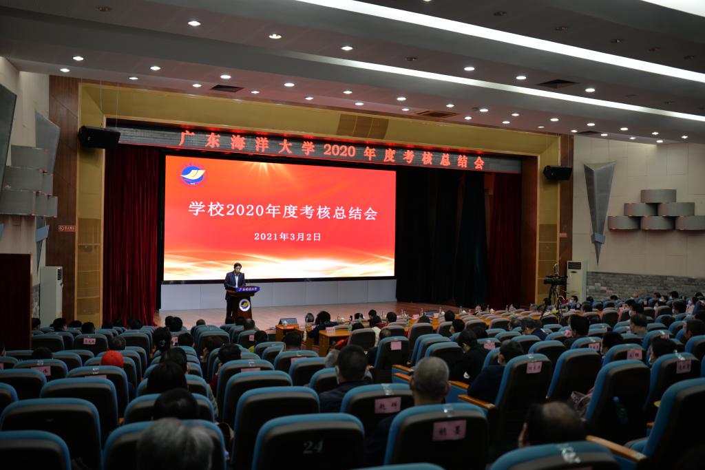 3月2日上午,学校在湖光校区主楼多功能厅召开2020年度考核总结会。全体校领导出席会议。校党委书记曹俊明作了讲话。校长、校党委副书记林晓敏、副校长谭北平分别作学校2020年度考核总体情况、单位(部门)和管理岗位、专业技术岗位考核情况报告。会议由校党委副书记彭权群主持。副处(含相当)以上干部,各学院教师代表参加了现场会议,部分教职工在学校企业微信平台上观看了直播。