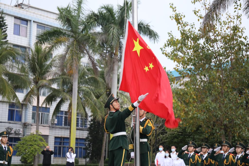 3月8日早上,学校分别在湖光校区海洋广场和海滨校区共青广场举行以“学习党史明德志,海纳厚为谱新篇”为主题的2021年春季开学升旗仪式。学校党委书记曹俊明等学校领导出席升旗仪式,机关各部门主要负责人、学院党政主要负责人、教师党员代表、学生党员代表等共900多名师生现场参加升旗仪式,其他师生在线上参加仪式。学校党委副书记、纪委书记彭权群,副书记林晓敏分别主持升旗仪式。