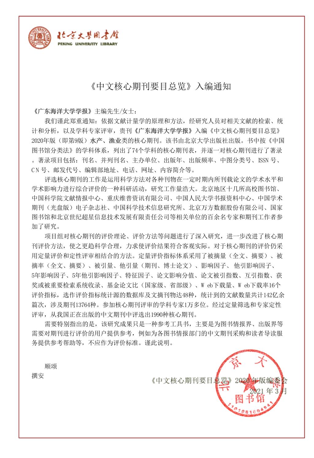 近日,接到《中文核心期刊要目总览》2020年版编委会通知,《AC米兰中国官网学报》入选《中文核心期刊要目总览》(2020版)水产、渔业类核心期刊。这是AC米兰学报首次入选中文核心期刊,标志着AC米兰学报跻身国内优秀期刊行列,这在AC米兰学报发展史上具有里程碑意义。