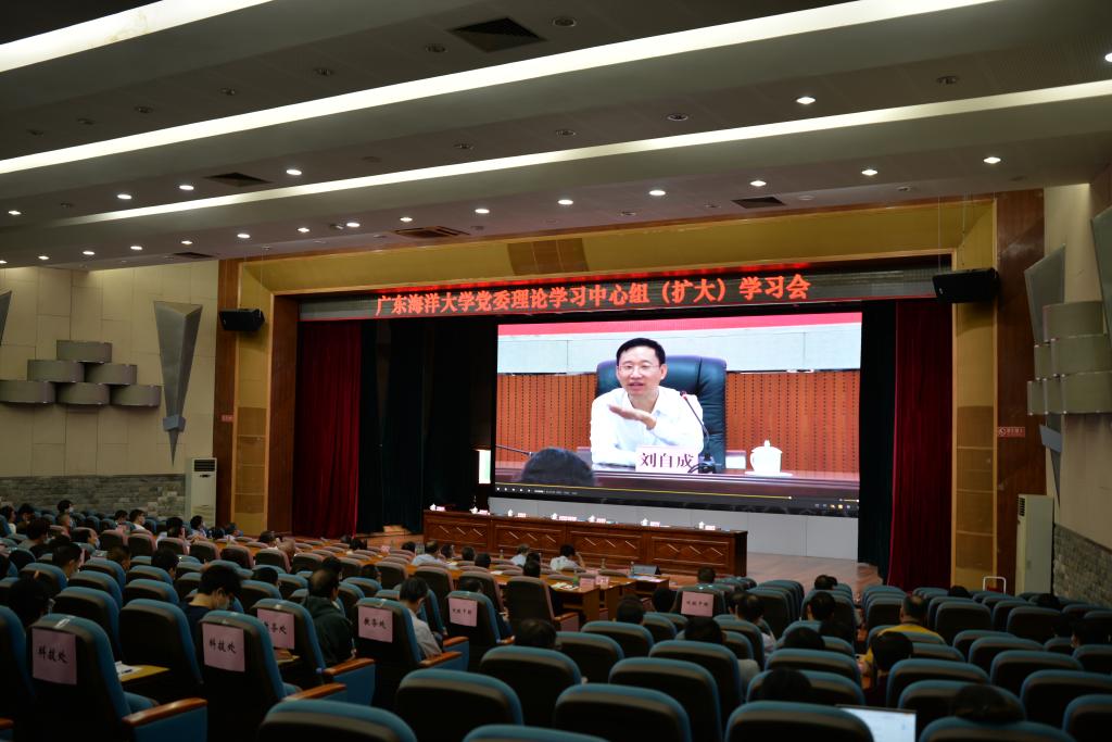 4月29日上午,学校在湖光校区教学主楼多功能厅召开党委理论学习中心组(扩大)学习会,专题学习贯彻习近平总书记关于党史学习教育和教育工作的重要论述,学习贯彻《深化新时代教育评价改革总体方案》,研讨如何深入推进党史学习教育,结合学校实际落实教育评价改革总体方案,贯彻党的教育方针,坚持社会主义办学方向,落实立德树人根本任务,坚持为党育人,为国育才,培养担当民族复兴大任的时代新人。学校党委理论学习中心组全体成员,全校处级干部,发展规划处、人事处、教务处、科技处全体干部参加会议。学校党委书记曹俊明主持会议。