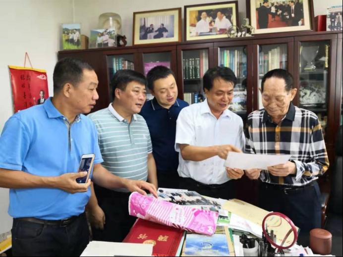 2019年9月,袁隆平(右1)和郭建夫(右2)、鲁义善(右3)、陈进军(左2)、