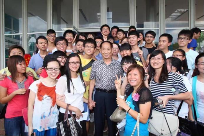 2012年6月27日,袁隆平在海大水生生物博物馆前与师生们合影