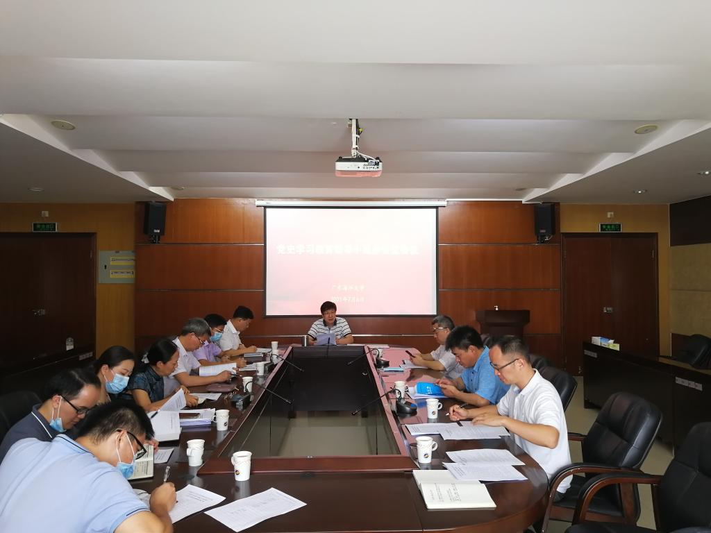7月6日上午,党委常委、副校长、学校党委党史学习教育领导小组办公室主任刘东超在湖光校区行政楼四楼会议室主持召开学校党委党史学习教育领导小组办公室会议,部署学习贯彻习近平总书记在庆祝中国共产党成立100周年大会上的重要讲话精神工作。校党委常委、组织部部长林宇参加会议。