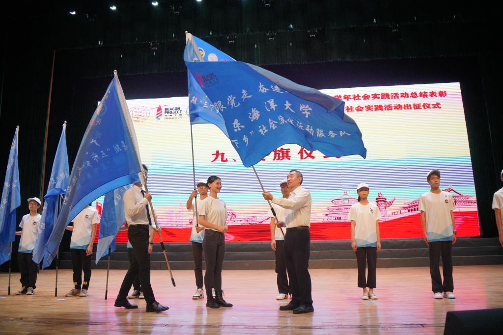 曹俊明希望同学们要胸怀中华民族伟大复兴的战略全局和世界百年未有之大变局,把握新发展阶段,贯彻新发展理念,构建新发展格局,肩负起历史使命,在社会课堂中受教育、长才干、作贡献,在观察实践中学党史、强信念、跟党走,努力成为担当民族复兴大任的时代新人。最后,他还为党史学习宣讲团、科技下乡服务团、红色记忆寻访团等10个主题教育实践团代表进行了授旗。