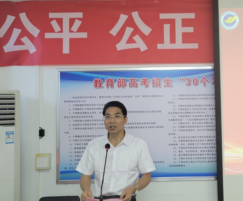 彭权群对招生录取工作提出三点纪律要求:一是要增强责任感和使命感,二是要强化监督执纪问责,三是要履职尽责遵纪守法。同时希望相关职能部门和全体招录人员做到以下六点:一、招录人员要认真履行工作职责,招生职能部门要切实履行监管责任;二、严格执行拟录取、拟退档考生相关规定;三、认真建立健全招生管理制度,做好对新生入学资格复查工作;四、严格执行回避制度以及对参与招生录取工作人员资格审查;五、严格遵守保密制度规定;六、严格遵守教育部高校招生考试“六不准”“八项基本要求”“十严禁”“十公开”“30个不得”等规定。
