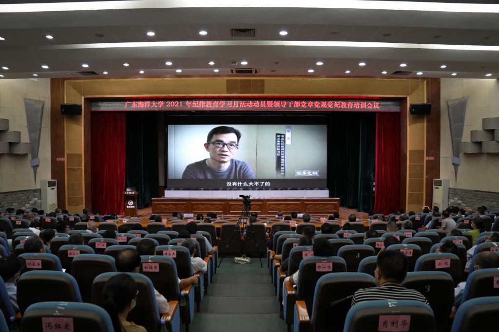 8月31日上午,学校纪律教育学习月活动动员暨领导干部党章党规党纪教育培训会议在湖光校区教学主楼多功能厅召开。会议主题是“学党史悟思想,守纪律铸忠诚”,主要任务是深入学习贯彻习近平新时代中国特色社会主义思想,深入学习贯彻习近平总书记“七一”重要讲话和关于全面从严治党重要论述精神,教育引导党员干部增强“四个意识”、坚定“四个自信”、做到“两个维护”,强化党章党规党纪意识,锤炼忠诚干净担当的政治品格,为学校建设高水平海洋大学作出新的贡献。全体校领导出席会议。校党委书记曹俊明作动员讲话暨专题辅导报告。学校相关领导主持会议并讲话。党委副书记、纪委书记、监察专员彭权群对今年的纪律教育学习月活动作了安排部署。